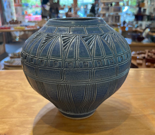 Large Blue Round Vase Nick Blaisdell 10" wide x 6.5" tall