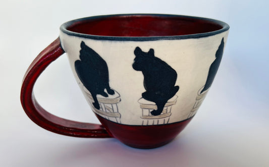 Cats on Coffee Cup 5”x3” by Sally Jaffee