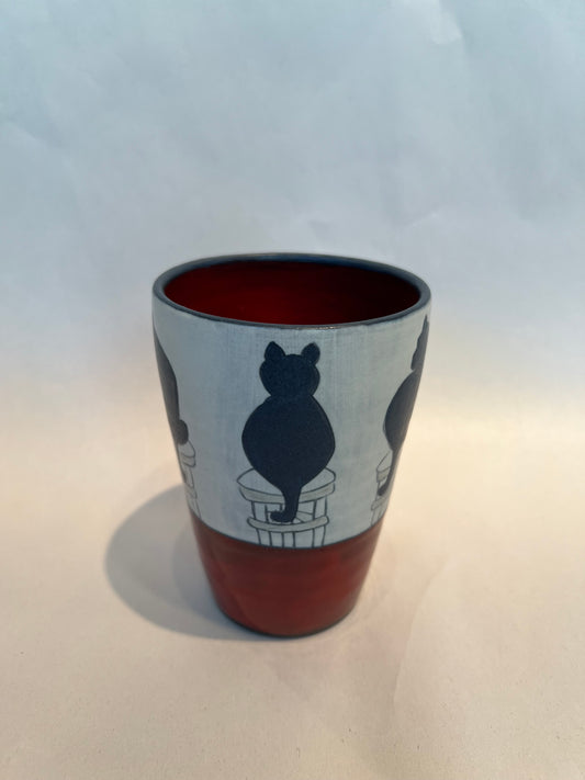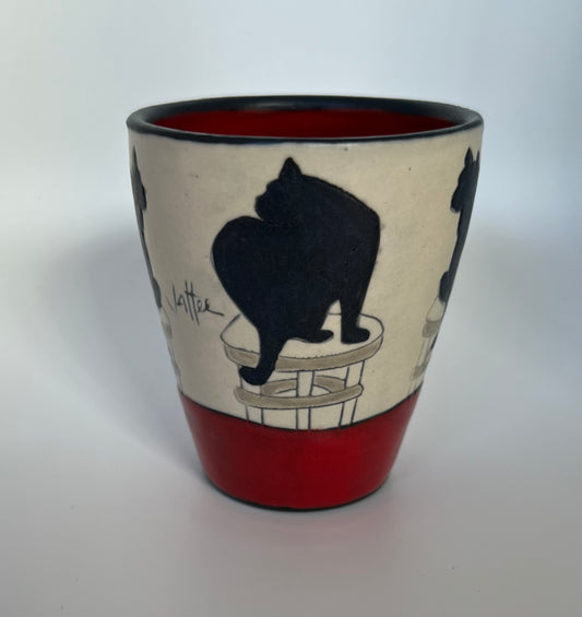 Cats on Juice cup 3.5"x3" by Sally Jaffee